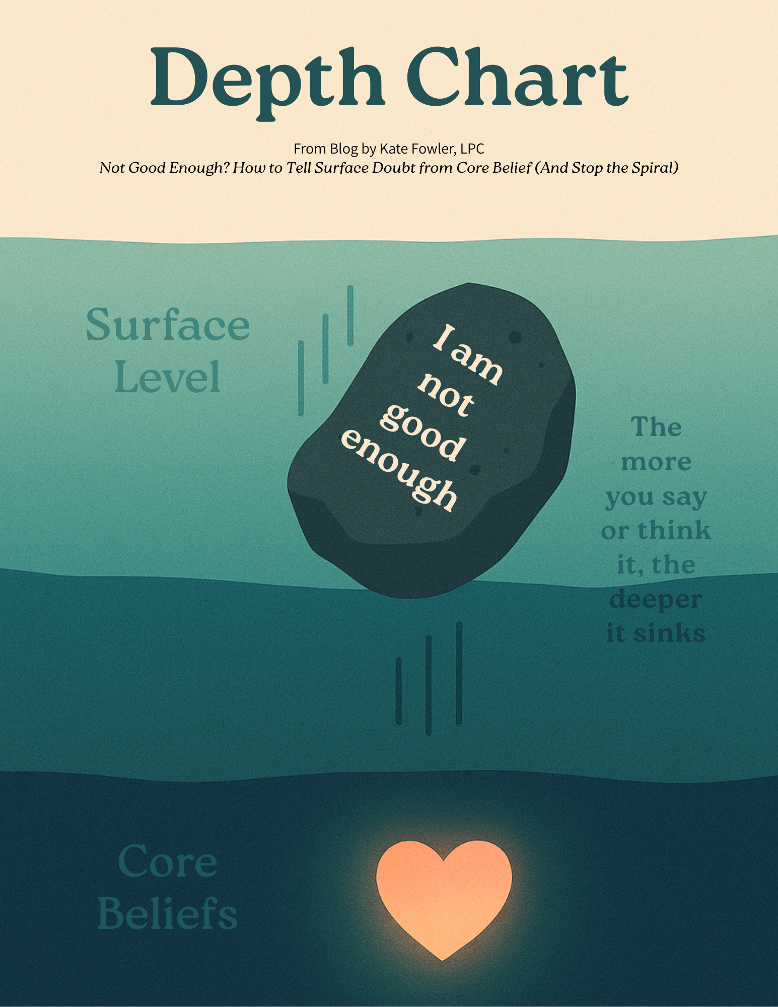 Let’s use a visual metaphor: a depth chart. On the surface are the roles you play, the goals you go after, the things you try. Deeper down are your internalized beliefs—the unspoken “truths” you’ve absorbed about yourself.