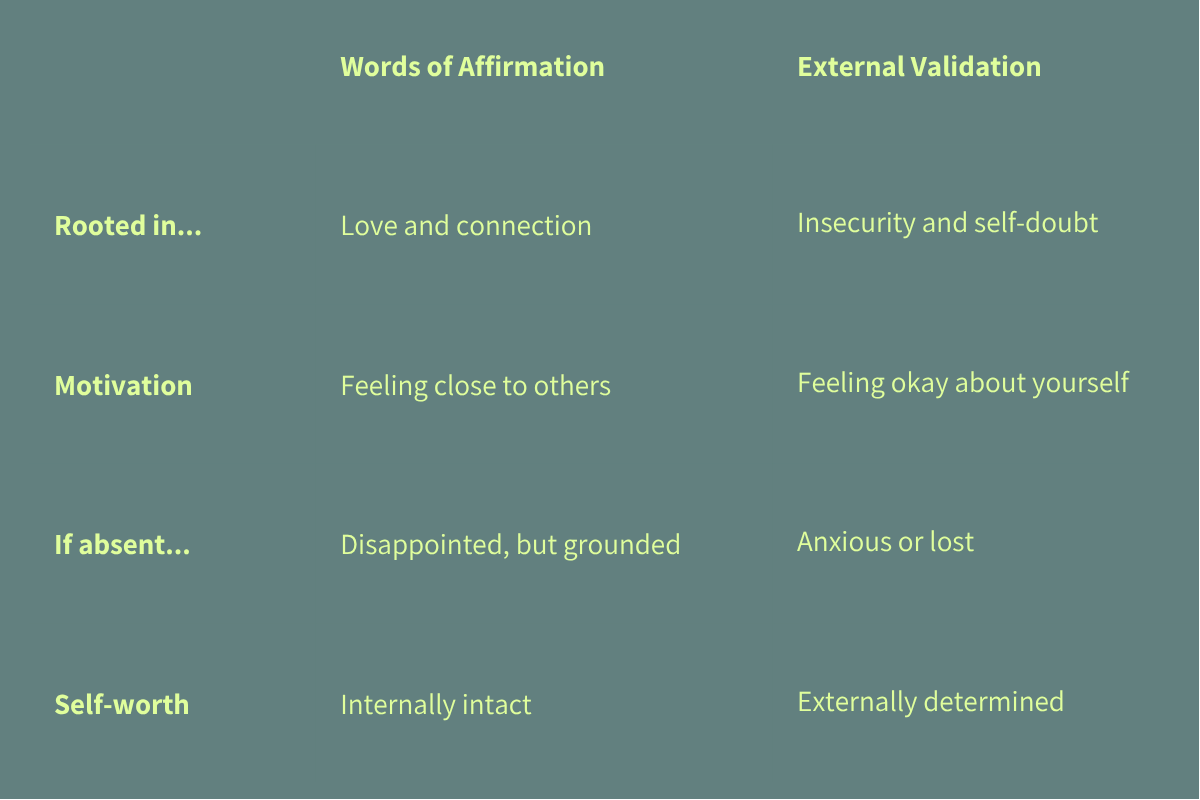 Words of Affirmation vs. External Validation: How to Tell the Difference (And Why It Matters for Your Mindset)